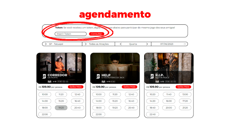 Dessa forma, é possível fazer a reserva com o número mínimo de integrantes da atração e, em seguida, enviar o TOKEN para que os demais possam se juntar à mesma reserva, finalizando o pagamento individualmente.